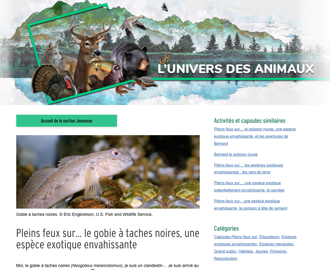 Article de vulgarisation s’adressant à un public jeunesse et portant sur le gobie à taches noires.